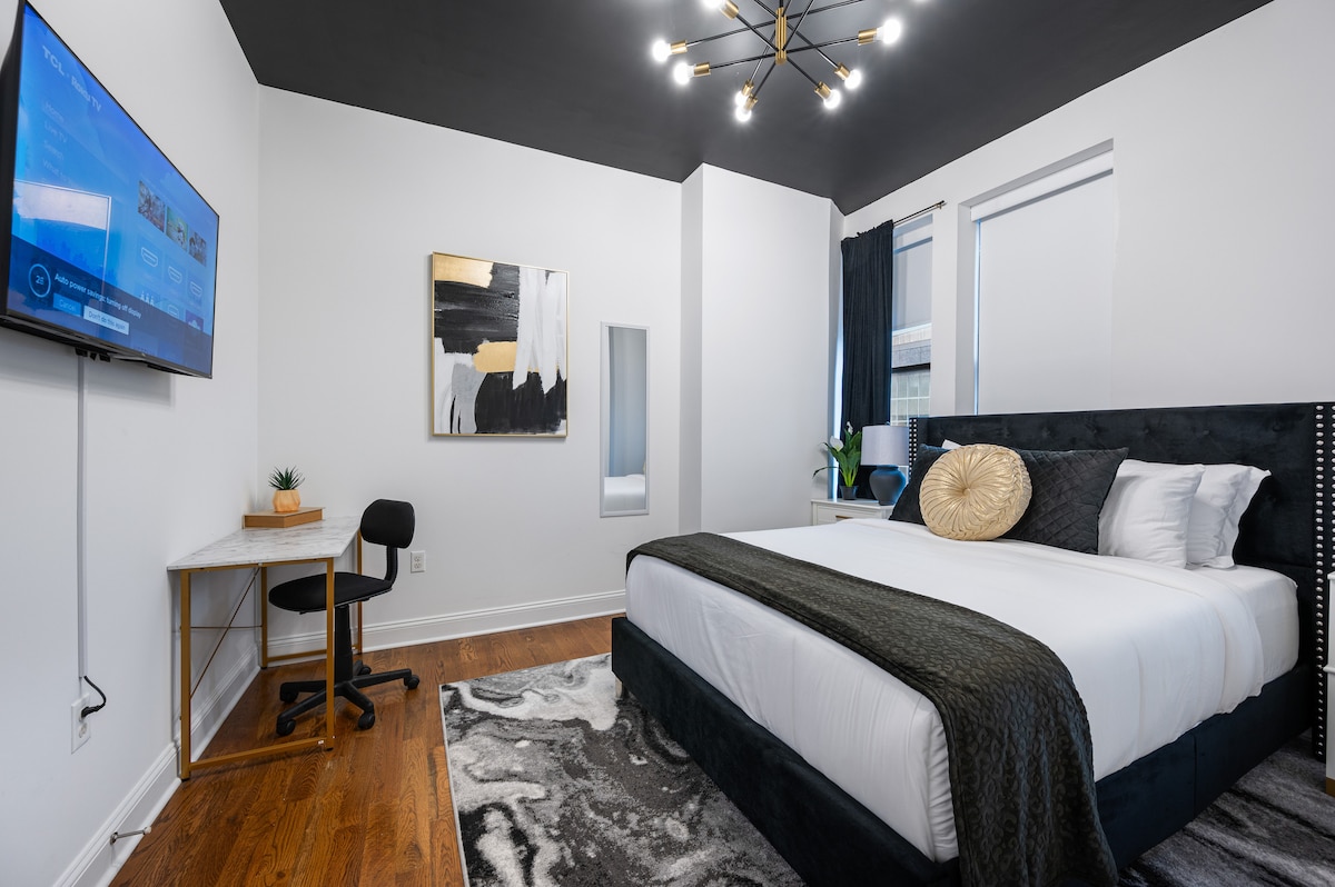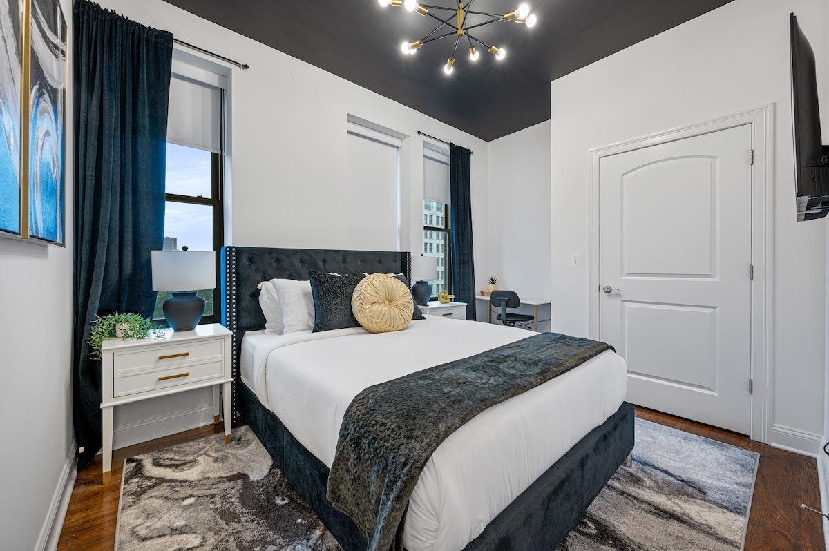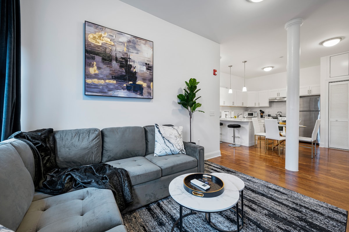 NewarkStep into the lap of luxury in this beautifully decorated 2 Bd 1 Bath apt in a secure building in the heart of downtown Newark. The sophisticated and chic interior boast plush furnishings, large windows, and elegant finishes throughout. The fully equipped kitchen and dining area is perfect for hosting intimate dinners. The beds have premium memory foam mattresses with 100% cotton sheets. Amenities include dishwasher, Laundry, free WiFi. Located just 8a 5 minute walk to Penn train station