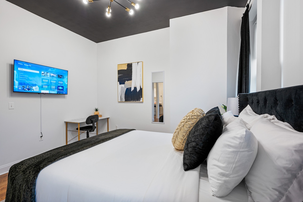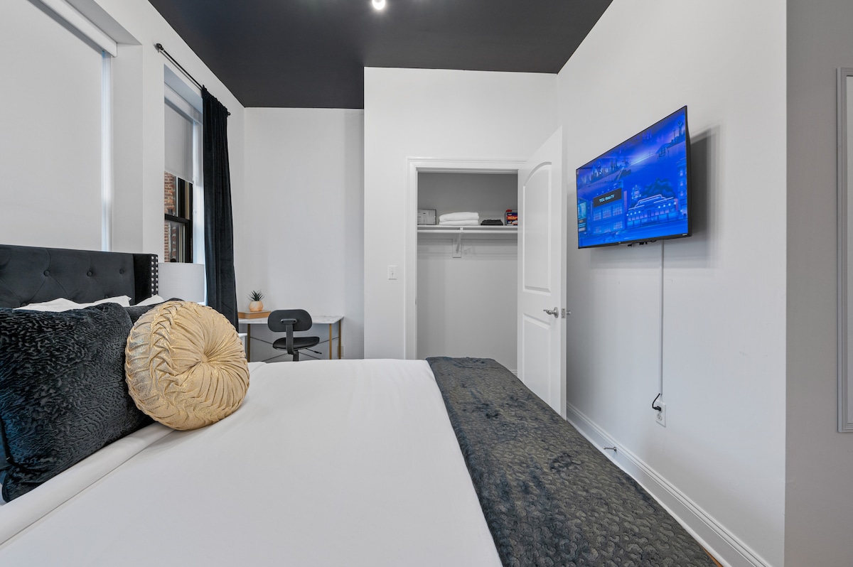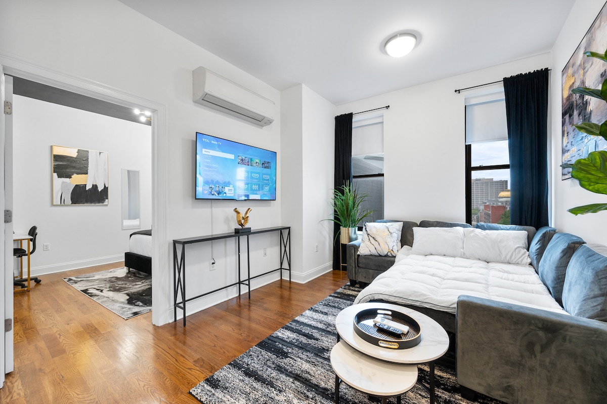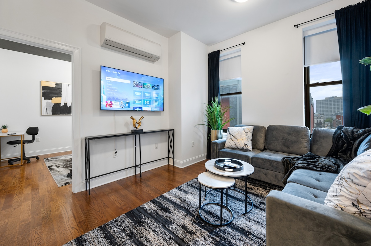 NewarkStep into the lap of luxury in this beautifully decorated 2 Bd 1 Bath apt in a secure building in the heart of downtown Newark. The sophisticated and chic interior boast plush furnishings, large windows, and elegant finishes throughout. The fully equipped kitchen and dining area is perfect for hosting intimate dinners. The beds have premium memory foam mattresses with 100% cotton sheets. Amenities include dishwasher, Laundry, free WiFi. Located just 8a 5 minute walk to Penn train station