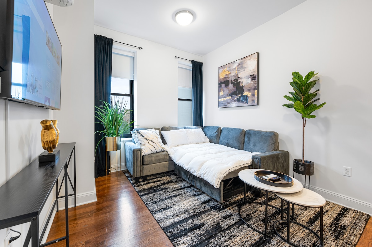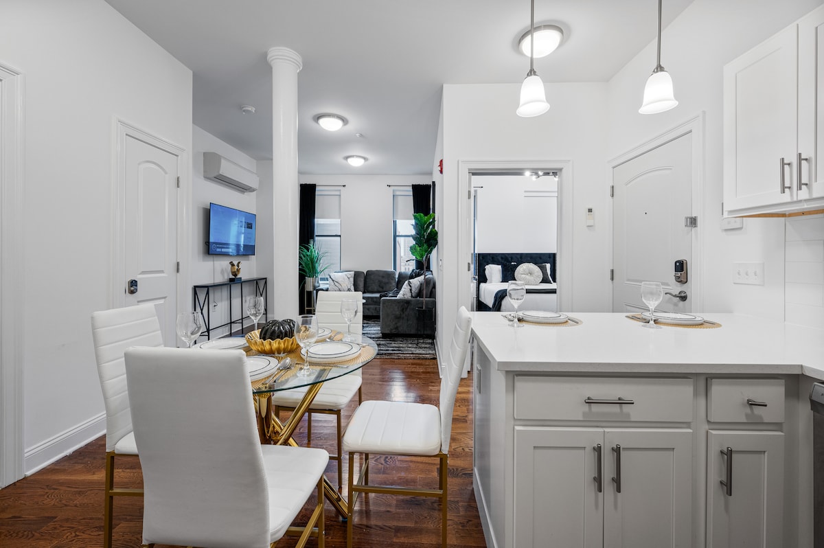 NewarkWelcome to our modern 2-bedroom, 1-bath apartment in the heart of Downtown Newark! Perfect for small families, couples, or business travelers, this stylish space features comfy beds, a full kitchen, fast Wi-Fi, and smart TVs. Walk to restaurants, shops, and public transit. Just minutes from Prudential Center, NJPAC, and Rutgers. Enjoy comfort, convenience, and city access all in one place!